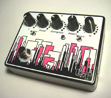 dissect:  this is a new feature that you won't find anywhere else. but its hard to explain if you don't fully understand how reducers / sample and holds work. to put it simply, it gives you control over how long the sample of the sample and hold is. from the very short length used to make the reducer effect, to a wide squarewave used for a normal sample and hold. the samples and videos should explain further. what this does is allow you to use the downgrade in far more applications because you can now adjust the amount of the source sound that comes through the reduction process. also if you flip the descend switch and increase the range that the reducer can travel, what used to be rather worthless in the lower setting can now be slowly swept into a big chunky sample and hold similar a squarewave tremolo except that the sound that comes through is now a sample and its staggered in time. so if its hooked up in parallel with other effects you can achieve very interesting results. also being as how this can be put under voltage control you can use it as a modulating chopper/ stutter effect
